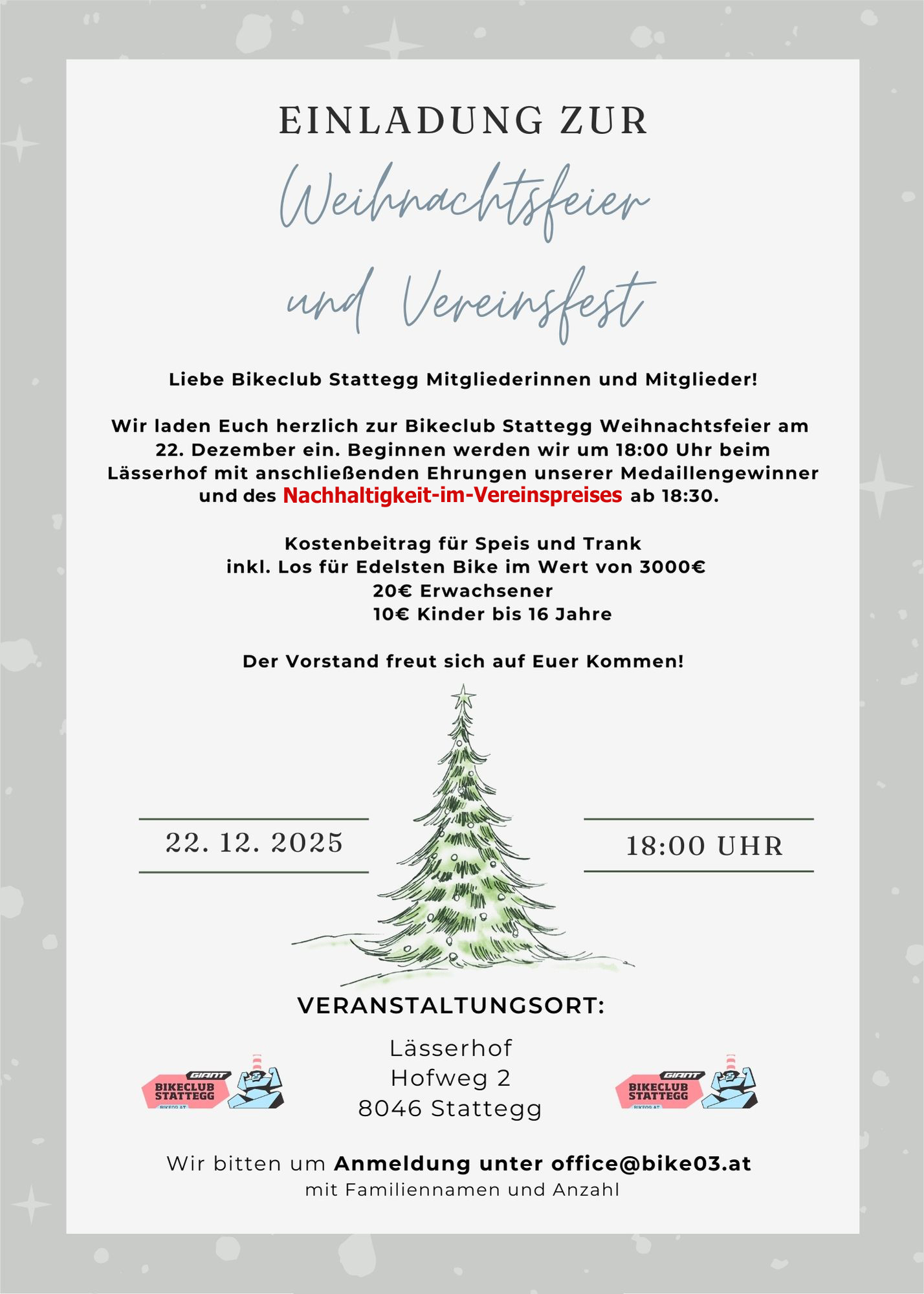 Der Bikeclub GIANT Stattegg ruft zur Weihnachtsfeier in den Lässerhof!