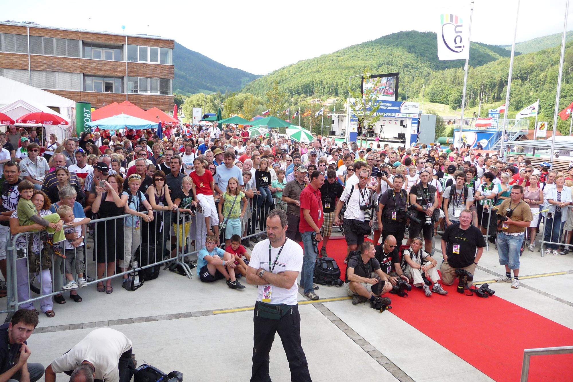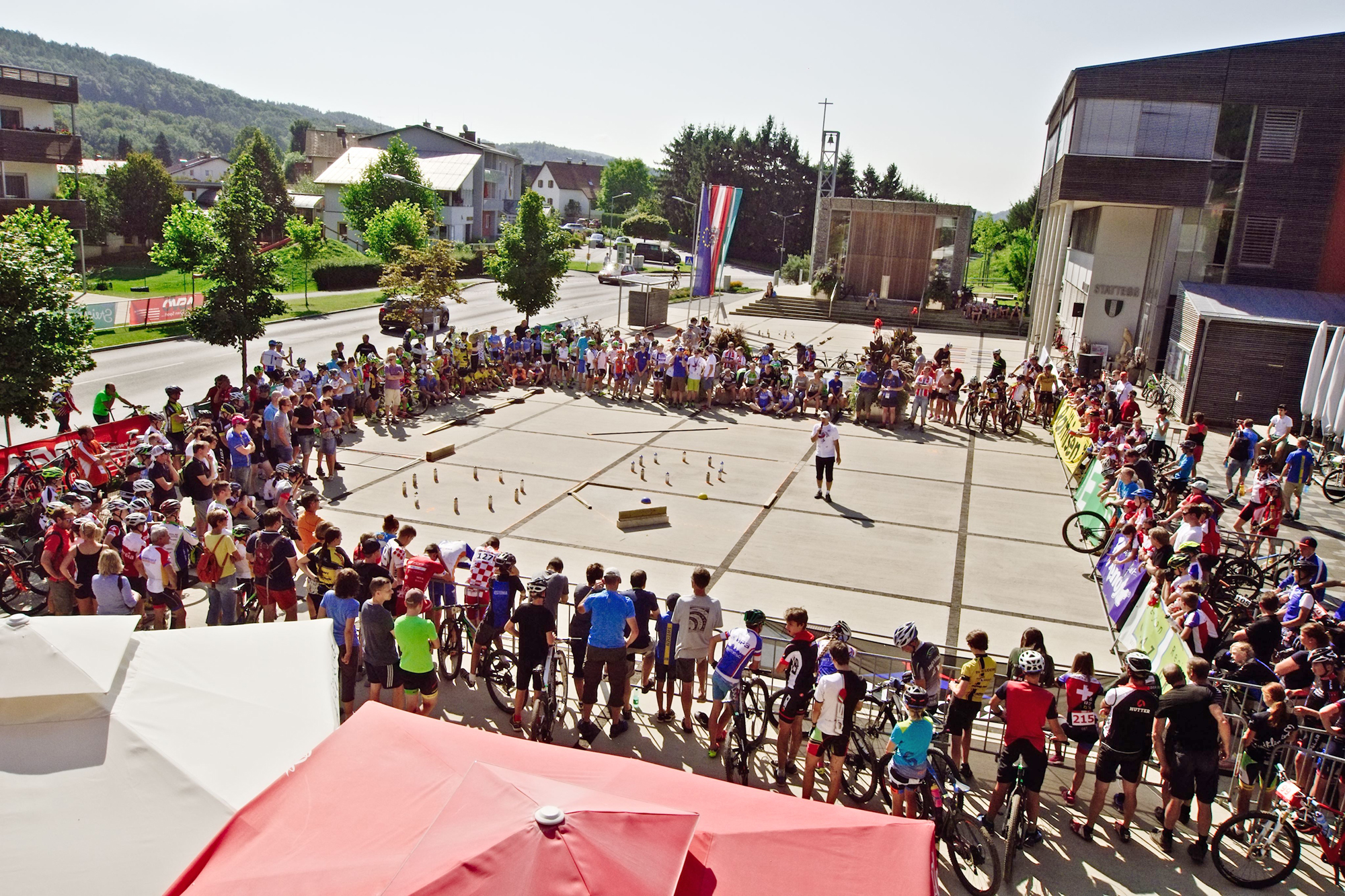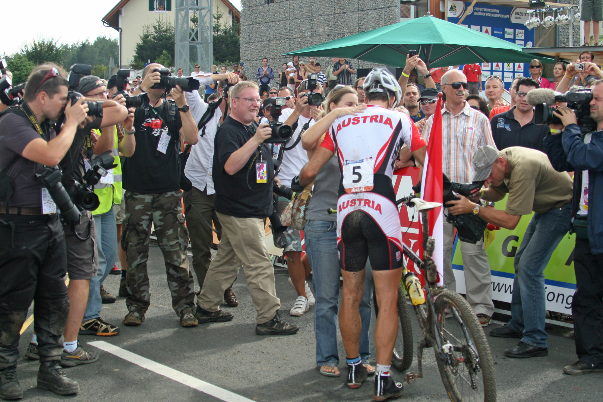 Der bislang größte, spannendste und medial wirkungsvollste Event war dann im Jahr darauf die UCI MTB Marathon WM 2009. Der neue Stattegger Dorfplatz bot dabei einen wirklich imposanten Rahmen als Start- und Zielort und Kulisse für die eindrucksvolle Eröffnungsfeier mit der Nationenparade der Stattegger Kinder und den stimmungsvollen Siegerehrungen.