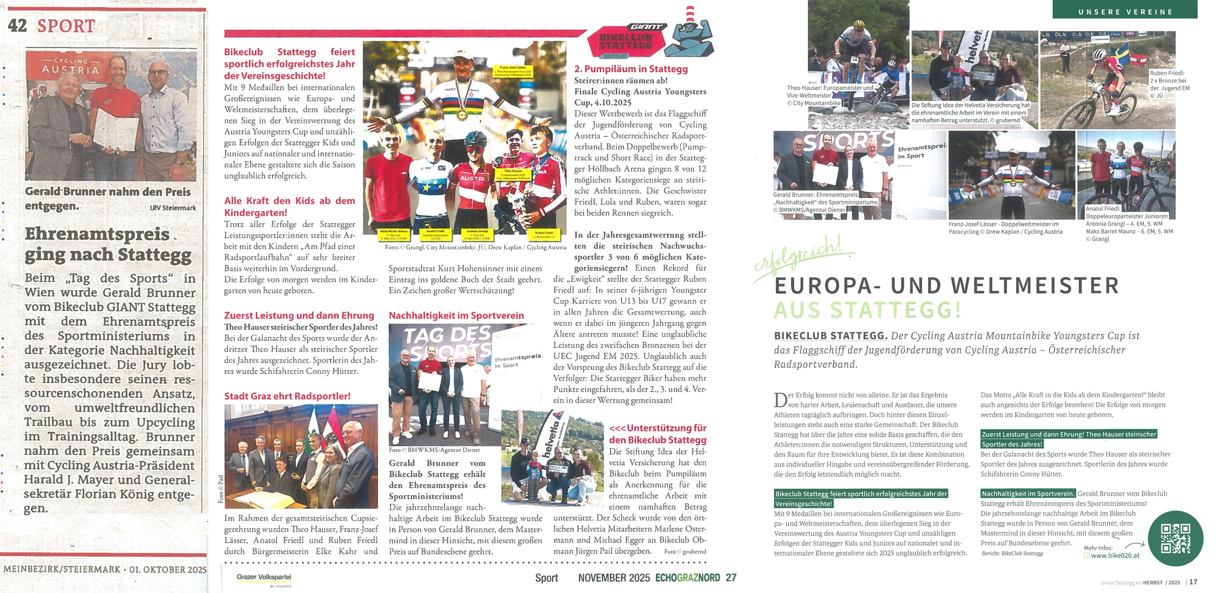 Auch die In t/nernationale Presse wurde auf die Auszeichnung aufmerksam, wie diese Artikel in den MTB Chronicles 2025, in der Woche/mein Bezirk/Steiermark vom 1. Oktober 2025, dem Echo Graz Nord Nov25 oder Unser Stattegg Dez25 zu berichten wissen.